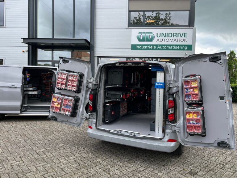 Verbeca leverde een maatwerk bedrijfswagen op voor Unidrive Automation, met een slimme combinatie van Sortimo SR5 en Milwaukee PACKOUT voor maximale efficiëntie, veiligheid en professionaliteit.