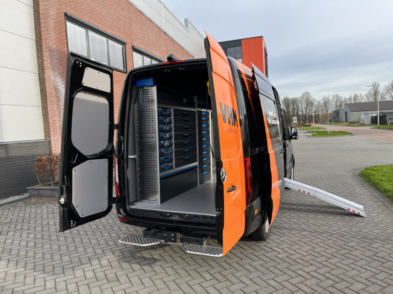 Voor VHM Machinery uit Ens hebben wij bedrijfswagens volledig uitgerust met onder andere Sortimo inrichting, oprijplaten, een RVS opstap en Victron stroom- en luchtvoorziening. Een complete oplossing voor efficiënt en veilig gebruik.